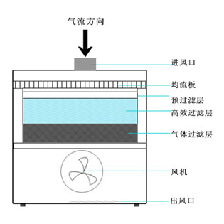 2.主過濾層過濾梯度設置:初中效過濾+HEPA高效過濾。凈化顆粒直